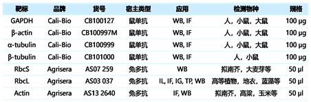 西美杰為您推薦Cali-Bio和Agrisera公司經(jīng)過(guò)驗(yàn)證的,高質(zhì)量的內(nèi)參抗體,產(chǎn)品如下:
