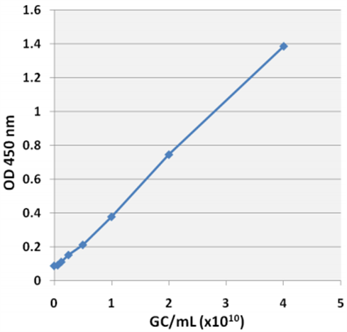 下圖展示了AAV滴度檢測試劑盒的標(biāo)準(zhǔn)曲線結(jié)果。