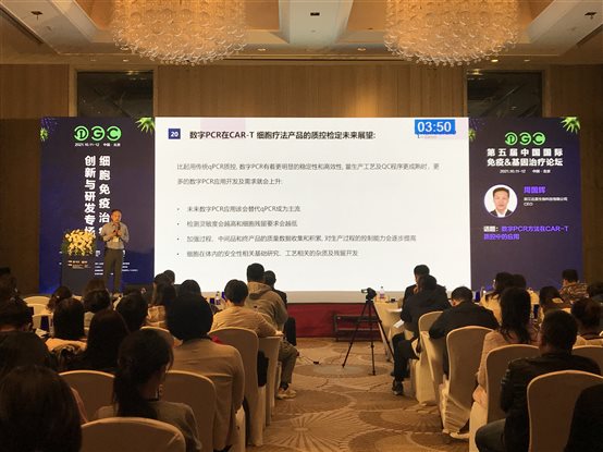 本次論壇西美杰特邀達(dá)普生物周?chē)?guó)輝博士為與會(huì)人員帶來(lái)了“數(shù)字PCR方法在CAR-T質(zhì)控中的應(yīng)用”的專(zhuān)題講座。周?chē)?guó)輝博士開(kāi)發(fā)了一種基于數(shù)字PCR方法的儀器及微流控芯片系統(tǒng),從質(zhì)量控制的角度,實(shí)現(xiàn)對(duì)CAR-T細(xì)胞等生物制品的質(zhì)控要求。
