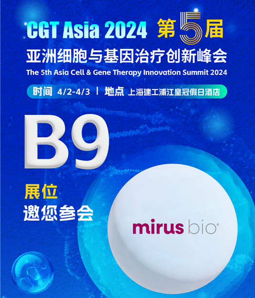 西美杰代理的Mirus與Astrea Bioseparations品牌將參加此次CGT峰會(huì),從上游轉(zhuǎn)染到下游純化,為提高病毒載體的產(chǎn)量、活率、純度提供新技術(shù)與高效解決方案,助力CGT項(xiàng)目行穩(wěn)致遠(yuǎn)。