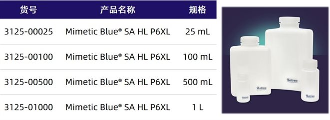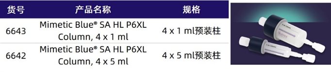 Mimetic Blue® SA HL P6XL是Astrea Bioseparations公司推出的白蛋白親和層析填料,填料基架是粒徑均一的交聯(lián)瓊脂糖,配基是合成的蒽醌化合物,可以特異性結(jié)合白蛋白,用于血漿來源的白蛋白或重組白蛋白的捕獲。Mimetic Blue® SA HL P6XL的性能參數(shù)如下表所示。
