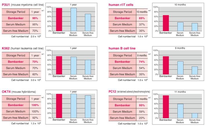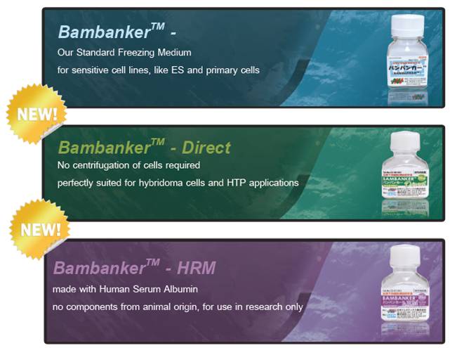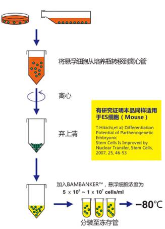 ?收集對(duì)數(shù)生長(zhǎng)期的細(xì)胞(5 x 105?~ 1 x 107)?用1ml?BambankerTM重懸細(xì)胞,置于凍存管中,無需預(yù)冷,直接-80℃或液氮冷凍保存細(xì)胞恒溫箱或水浴快速復(fù)蘇細(xì)胞